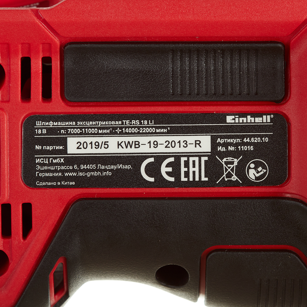 Аккумуляторная эксцентриковая шлифмашина Einhell PXC TE-RS 18 Li-Solo (4462010) пригодится для работ дома, в гараже или мастерской. Электронный контроль скорости позволяет шлифмашине подстроиться под любой материал. Эксцентриковый двигатель обеспечивает высокую производительность и качество шлифования. Удобная рукоятка Softgrip делает работу комфортной и безопасной. Абразивная бумага крепится с помощью липучки Velcro, это позволяет заменять её за несколько секунд. Шлифмашина имеет встроенную систему пылеудаления, кроме этого преусмотрена возможность подключенияrnпылесоса.rnАккумуляторная эксцентриковая шлифмашина Einhell PXC TE-RS 18 Li-Solo (4462010) поставляется без аккумулятора и зарядного устройства. Шлифмашина является представителем семейства Power X-Change, а значит совместима со всеми аккумуляторами платформы. Согласно Вашим задачам и потребностям аккумуляторы нужной ёмкости серии Power X-Change можно приобрести отдельно.