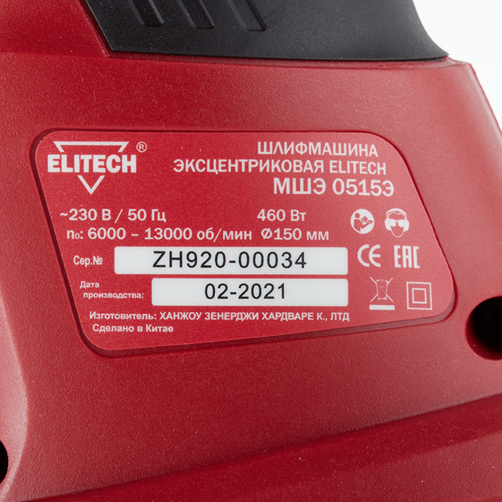Шлифмашина эксцентриковая электрическая Elitech МШЭ 0515Э 460 Вт d150 мм