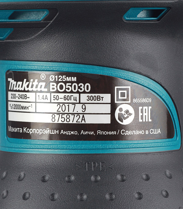 BO5030 – модель шлифмашины, 300 Вт – мощность, 125 мм – диаметр диска.