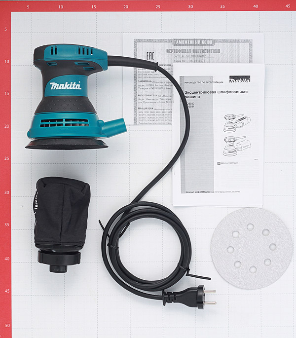 пылесборник, шлифовальный диск, шлифовальная бумага.