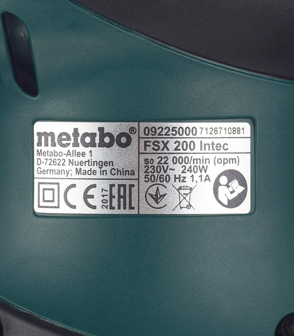Шлифмашина эксцентриковая электрическая Metabo FSX 200 Intec (609225500) 240 Вт d125 мм