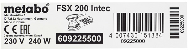 FSX 200 Intec – модель шлифмашины, 240 Вт – мощность, 125 мм – диаметр диска.