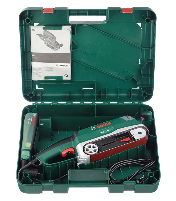 PBS 75 AЕ – модель шлифмашины, 750 Вт – мощность, 75x533 мм – размер шлифовальной ленты.