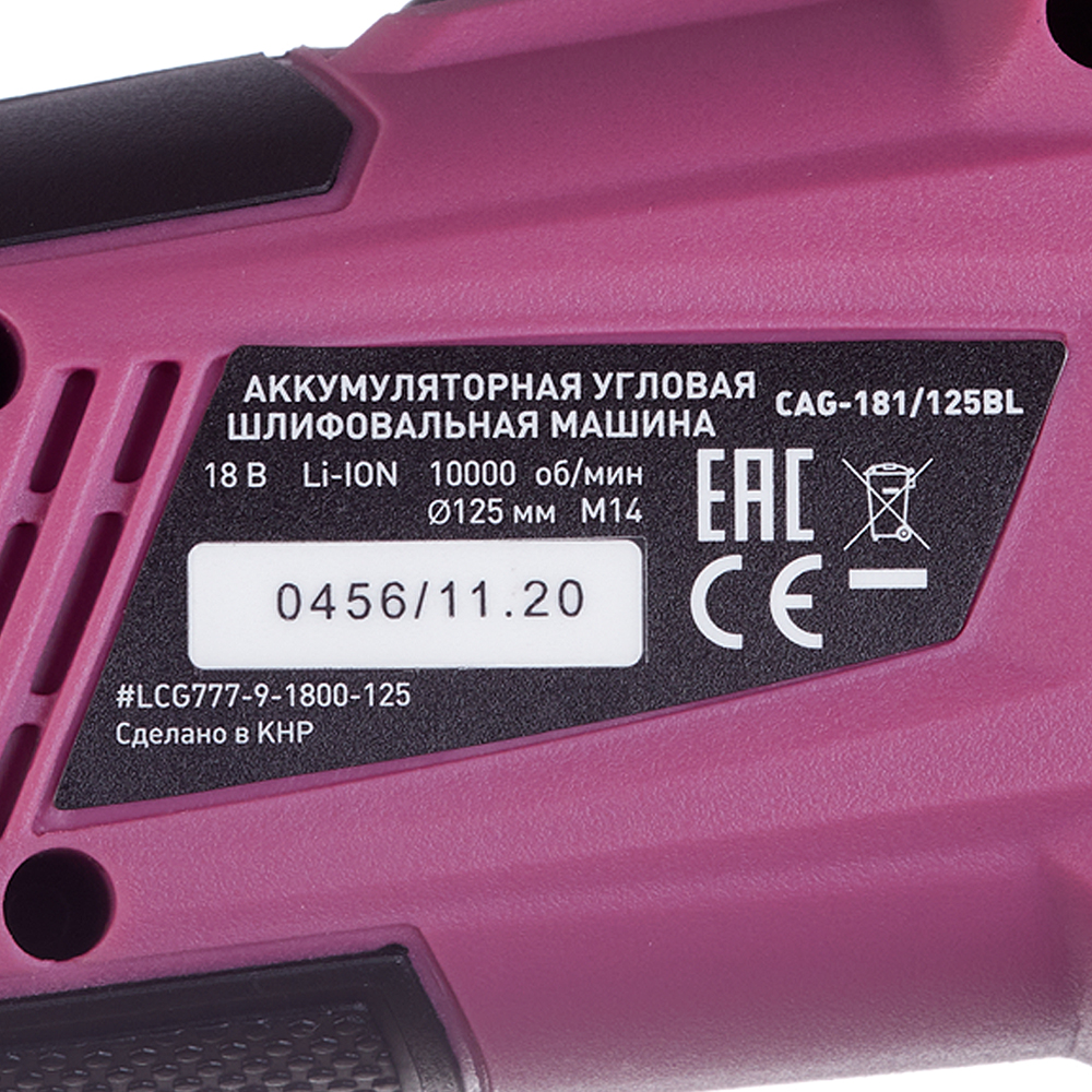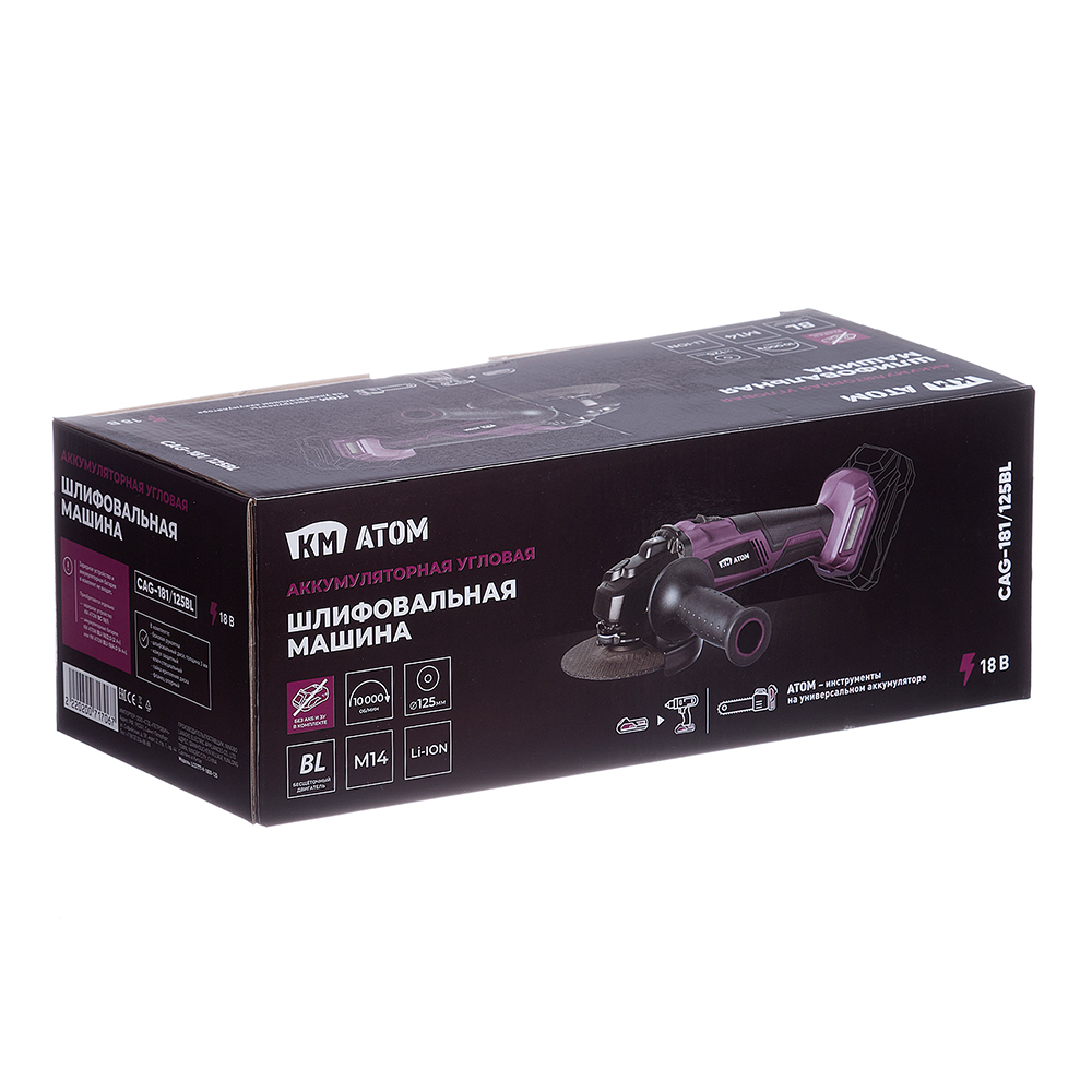 Шлифмашина угловая аккумуляторная КМ АТОМ СAG-181/125BL 18В Li-Ion d125 мм без АКБ и ЗУ