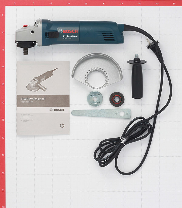 шлифмашина, защитный кожух, рожковый ключ, зажимная гайка, дополнительная рукоятка.