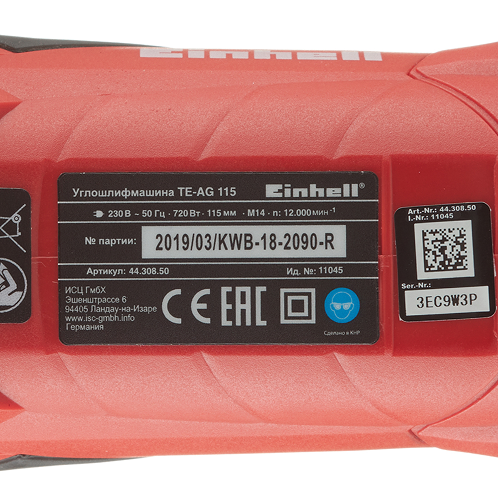 Шлифмашина угловая электрическая Einhell TE-AG 115 (4430850) 720 Вт d115 мм