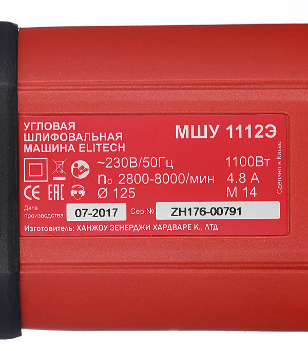 Шлифмашина угловая электрическая Elitech МШУ 1112Э 1100 Вт d125 мм