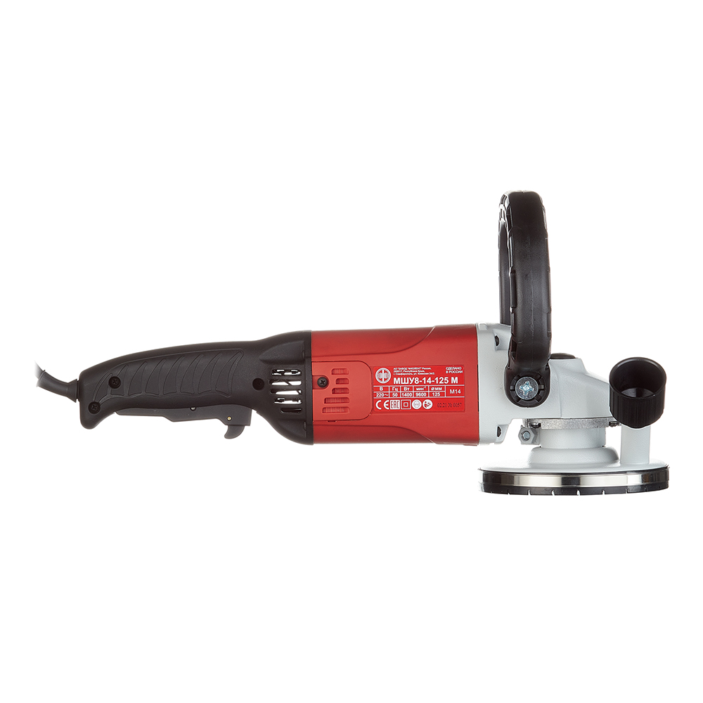 Углошлифовальная машина-шлифователь по бетону МШУ8-14-125 М позволяет выполнять широкий спектр операций: обдирочные работы, черновая шлифовка бетона и штукатурки, шлифование защитного покрытия из термопластика, зачистка и т.д. Два инструмента в одном изделии: шлифователь по бетону и угловая шлифовальная машина с кругом 125 мм, при замене защитного кожуха расширяет спектр выполняемых работ. Улучшенный электропривод и установка высококачественных комплектующих обеспечивает повышенный ресурс и надежность изделия. Корпуса редуктора из алюминиевого сплава обеспечивают долговечность изделия и отвод тепла. Корпус редуктора поворачивается на 90 градусов для максимального удобства работы. Эргономичный дизайн изделия обеспечивает удобное управление и максимальный комфорт в работе. Фиксация выключателя в нажатом положении обеспечивает удобную работу в непрерывном режиме. 3-х позиционное присоединения D-образной и дополнительной ручек (поставляются в комплекте) обеспечивают надежное удержание электроинструмента, снижает усталость и напряжение в работе. Подключение пылесоса обеспечивает чистоту на рабочем месте и высокое качество обрабатываемой поверхности. Съемные крышки для быстрой замены и контроля износа щеток. Самоотключающиеся щетки предохраняют электропривод от выхода из строя при износе щеток. Удобная фиксация шпинделя позволяет быстро менять режущий инструмент. Шнур питания с резиновой изоляцией обеспечивает надежную и безопасную работу в условиях строительной площадки.