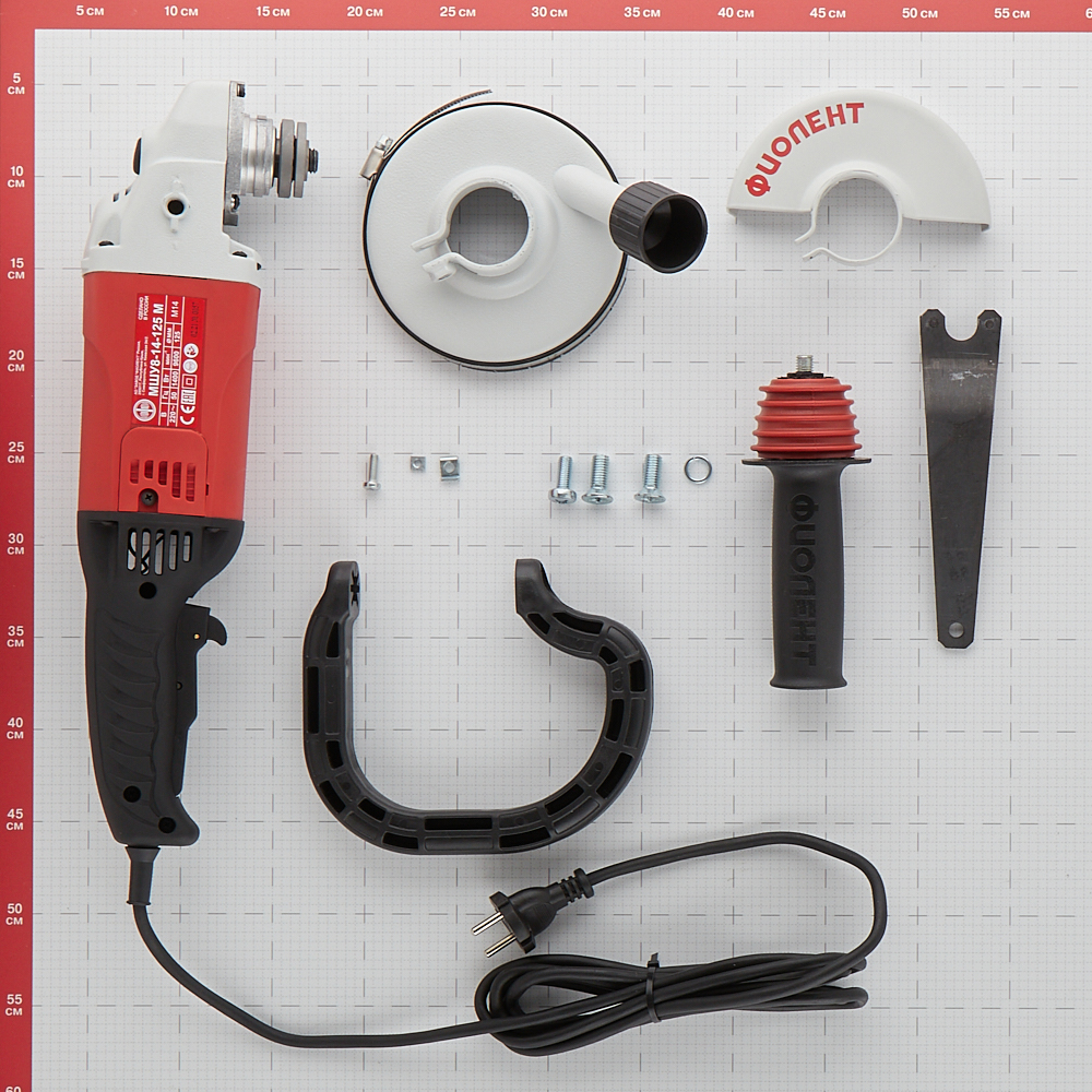 Углошлифовальная машина-шлифователь по бетону МШУ8-14-125 М – 1 шт, кожух – 1 шт, ручка D-образная – 1 шт, ручка дополнительная – 1 шт, ключ – 1 шт, руководство по эксплуатации – 1 шт.