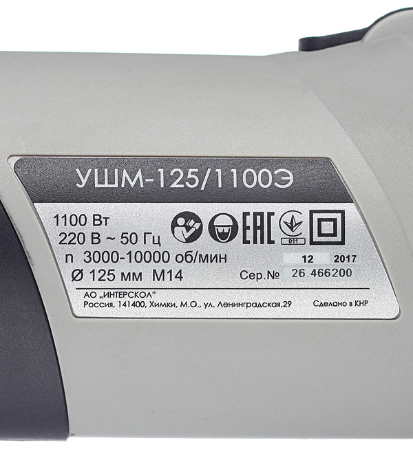 Шлифмашина угловая электрическая Интерскол УШМ-125/1100Э(Т) (26.1.1.00) 1100 Вт d125 мм