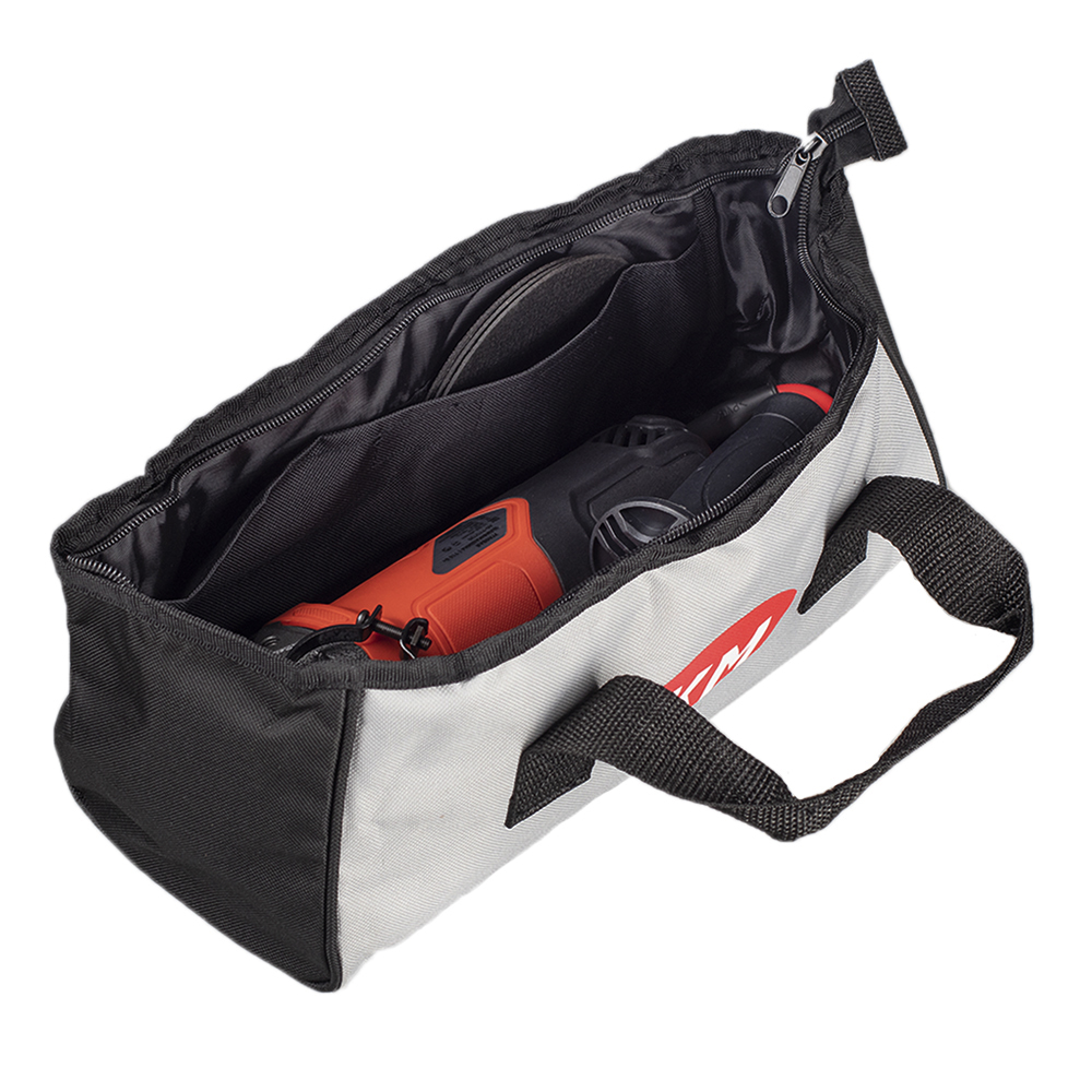 запасные угольные щетки, ключ специальный, сумка для хранения и переноски, 3 отрезных диска, кожух защитный, ключ-шестигранник.