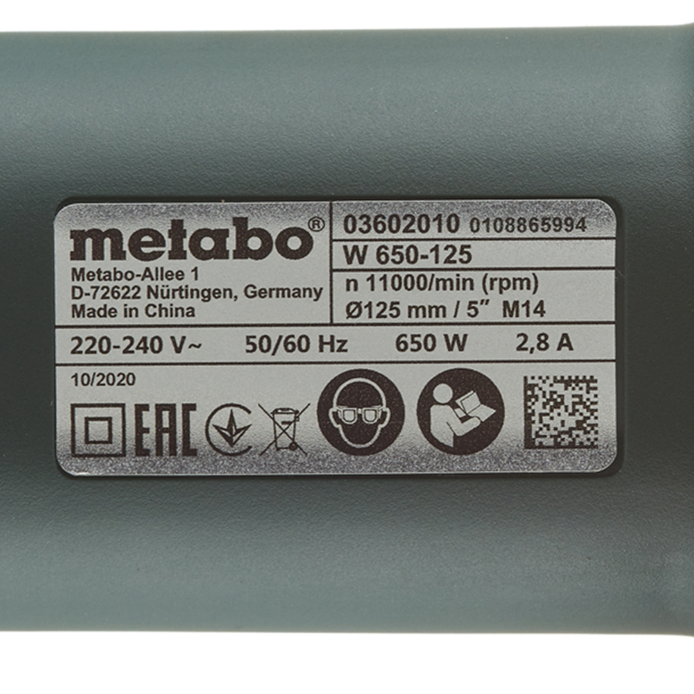 Шлифмашина угловая электрическая Metabo W 650-125 (603602010) 650 Вт d125 мм
