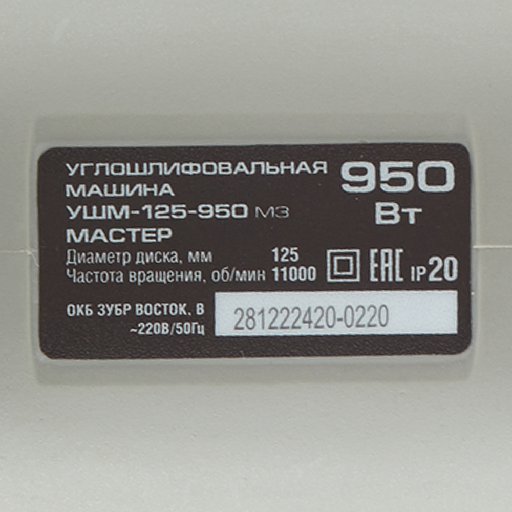 Шлифмашина угловая электрическая ЗУБР УШМ-125-950 М3 950 Вт d125 мм
