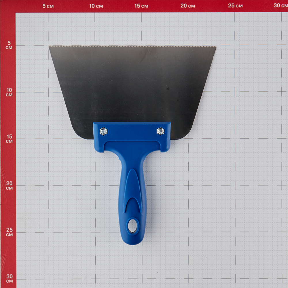Шпатель для клея зубчатый 180 мм A2 нержавеющая сталь синий с пластиковой ручкой