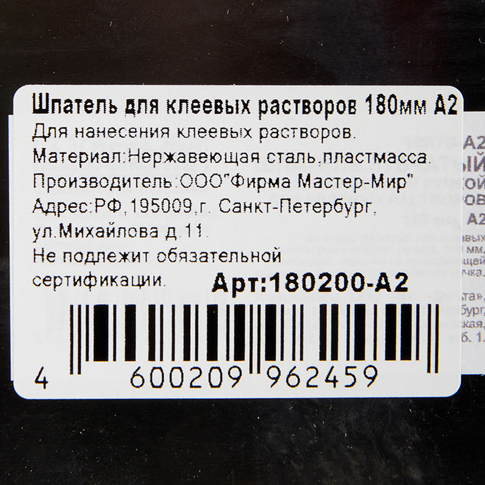 Предназначен для проведения работ по укладке гибких напольных покрытий в качестве инструмента для нанесения клеевого раствора. Полотно изготовлено из нержавеющей стали. Тип зубцов А2