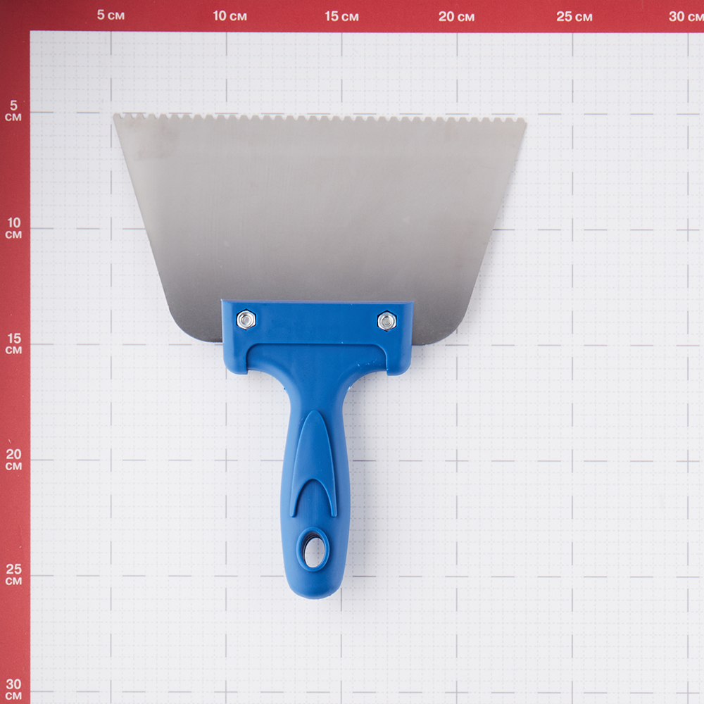 Шпатель для клея зубчатый 180 мм B2 нержавеющая сталь синий с пластиковой ручкой