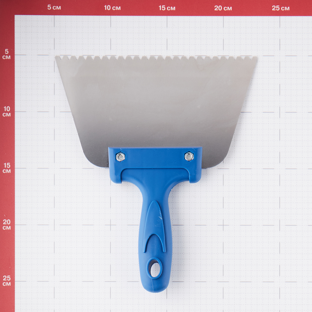 Шпатель для клея зубчатый 180 мм B3 нержавеющая сталь синий с пластиковой ручкой