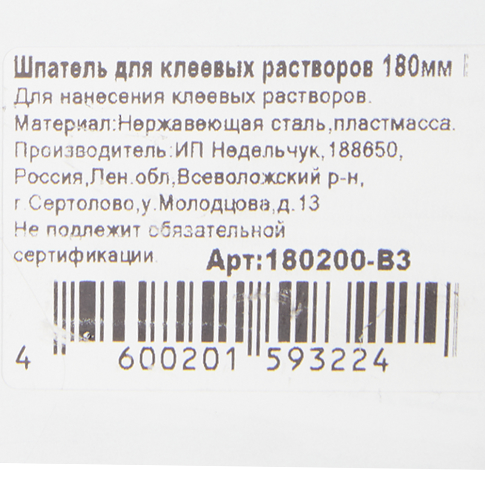 Предназначен для проведения работ по укладке паркета/ламината в качестве инструмента для нанесения клеевого раствора. Полотно изготовлено из нержавеющей стали. Тип зубцов В3
