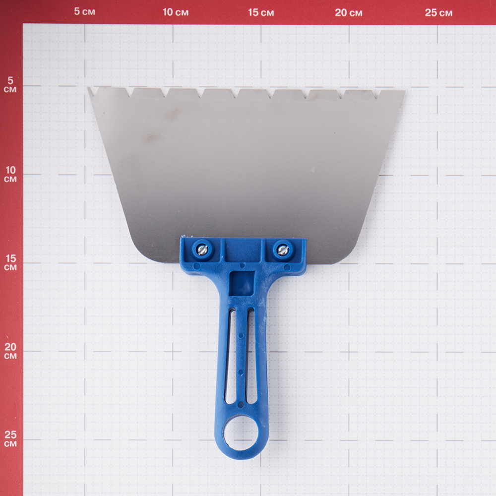 Предназначен для проведения работ по укладке паркета/ламината в качестве инструмента для нанесения клеевого раствора. Полотно изготовлено из нержавеющей стали. Тип зубцов В5