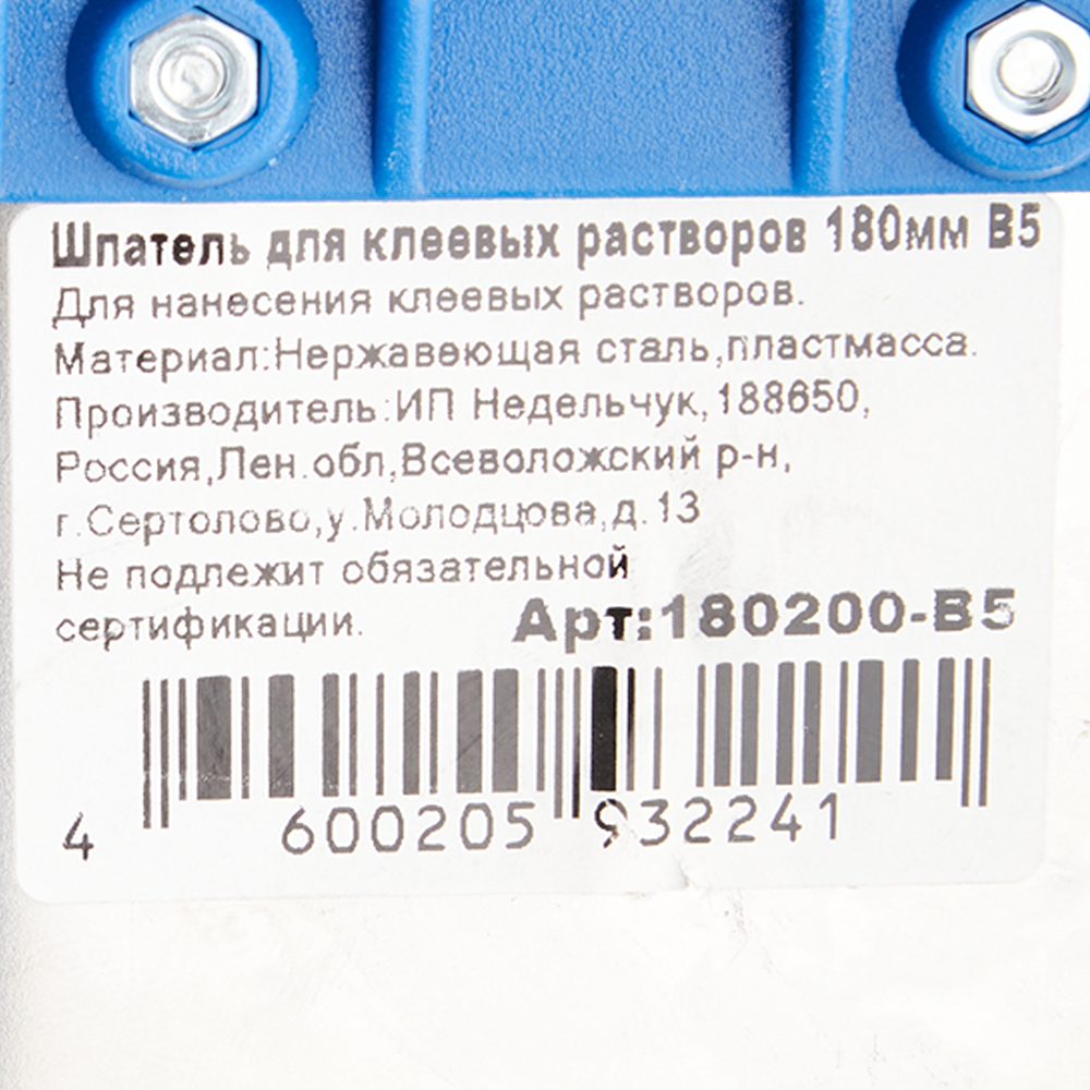 Шпатель для клея зубчатый 180 мм B5 нержавеющая сталь синий с пластиковой ручкой