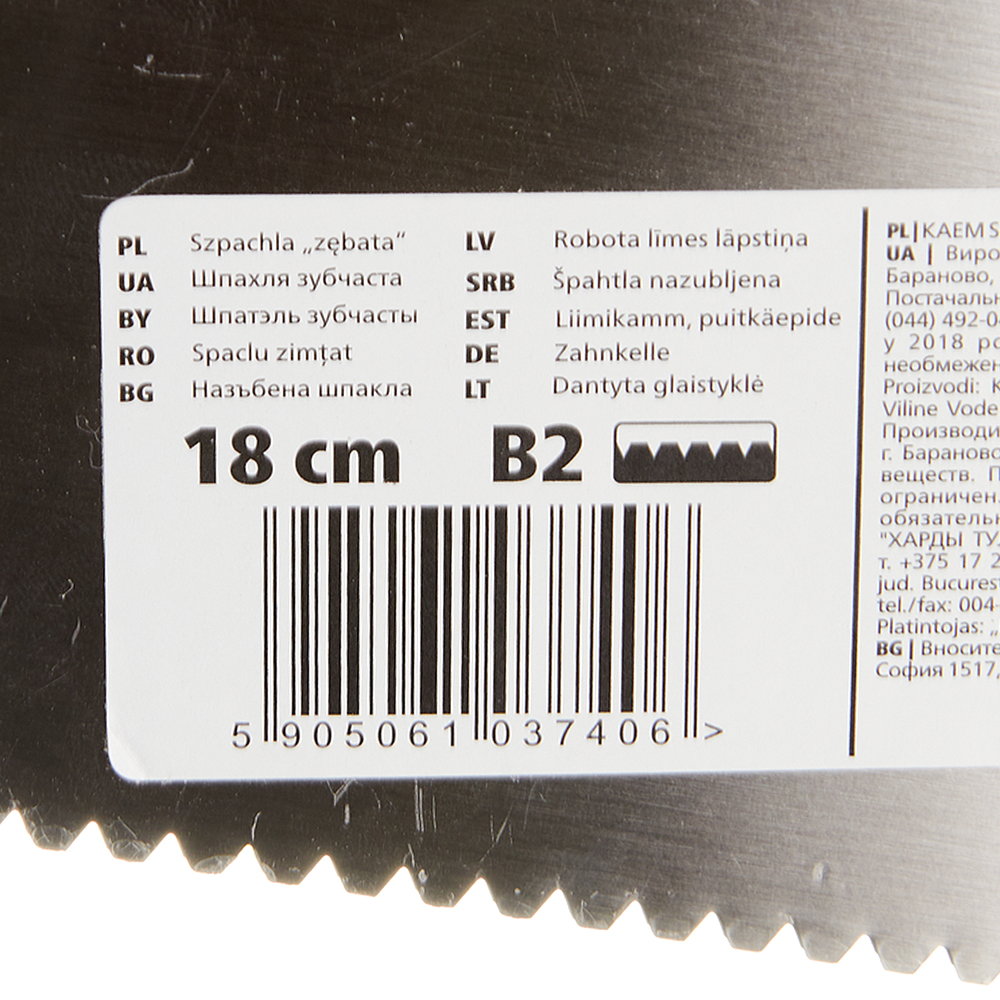 Шпатель для клея зубчатый Hardy 180 мм B2 нержавеющая сталь с деревянной ручкой