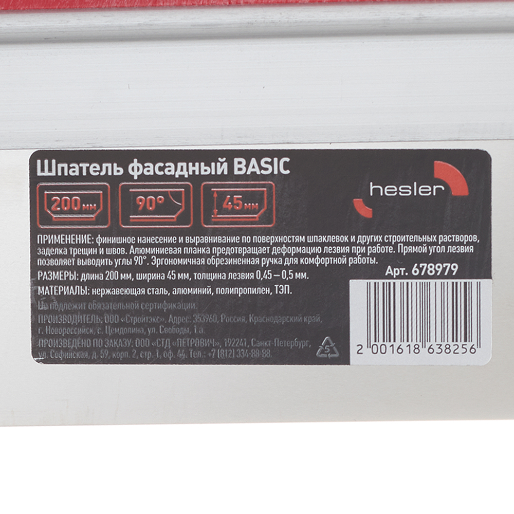 Шпатель фасадный Hesler Basic 200 мм с эргономичной ручкой