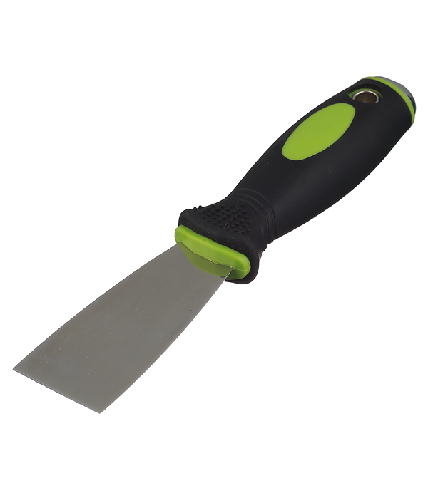 Предназначен для нанесения и выравнивания по поверхностям шпаклевок и других строительных растворов, заделки трещин и швов.rnРабочее полотно шпателя изготовлено из нержавеющей стали.