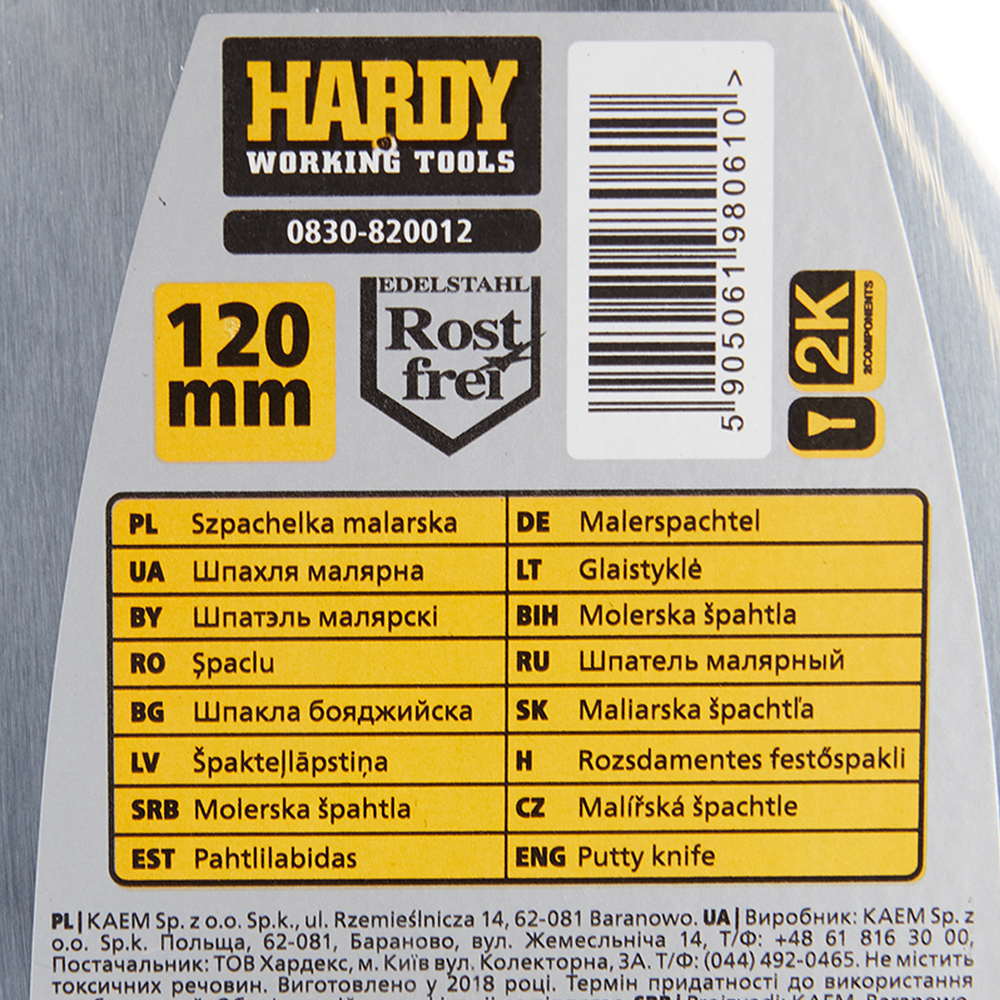 Шпатель малярный Hardy 120 мм с эргономичной ручкой