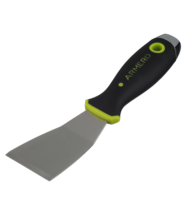 Предназначен для снятия с обрабатываемой поверхности всего лишнего: обои, краска, старая шпаклевка или штукатурка. Имеет жесткое изогнутое полотно толщиной 1,5 мм, изготовленное из полированной нержавеющей стали.