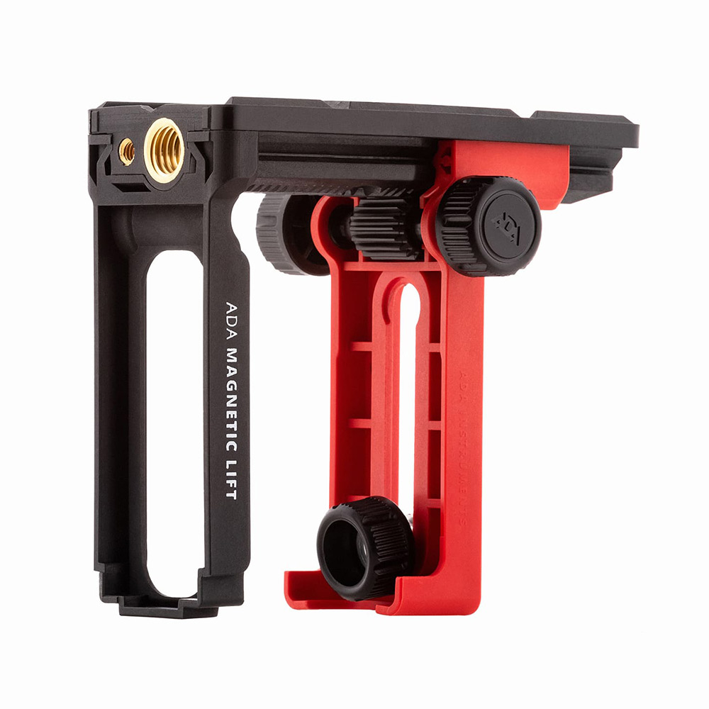 Для грубого выбора высоты установки прибора используется подвижный фиксатор SLIDER на штанге-штативе. Для миллиметровой точности наведения горизонтального луча в диапазоне от 0 до 11 сантиметров используется микролифт ADA MAGNETIC LIFT. Крепится ADA MAGNETIC LIFT на штанге мощными неодимовыми магнитами. В случае, если использовать штатив-штангу нет необходимости, лазерный уровень вместе с ADA MAGNETIC LIFT можно легко отделить от ADA Silver PLUS. Два устройства в одном.