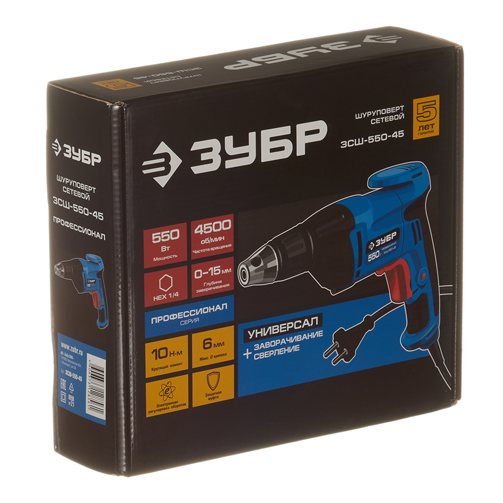 Шуруповерт безударный ЗУБР ЗСШ-550-45 550 Вт
