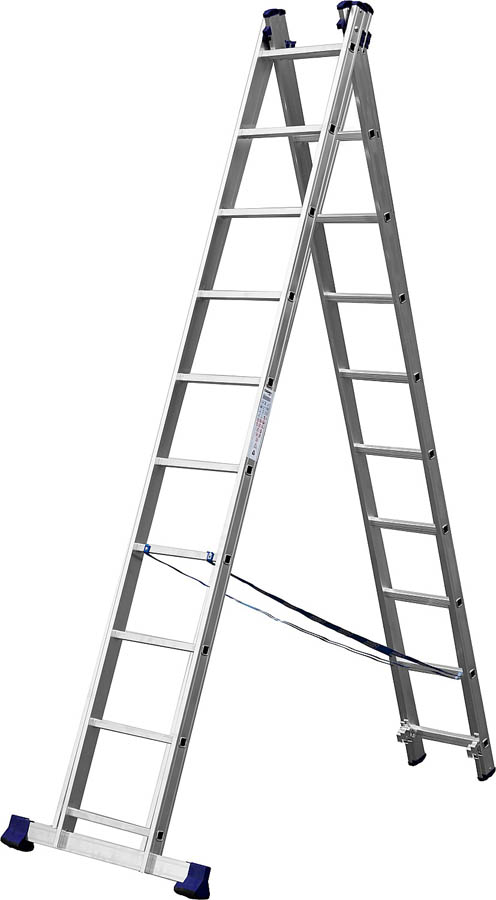 СИБИН число ступеней 2 х 10, алюминий, максимальная нагрузка 150 кг, лестница универсальная двухсекционная 38823-10