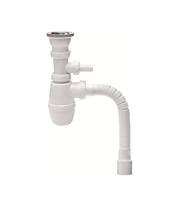 Сифон для мойки WIRQUIN 30718030 1 1/2х40 мм с выпуском D 70 мм с отводом и гибким соединением