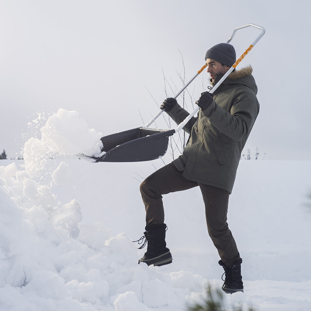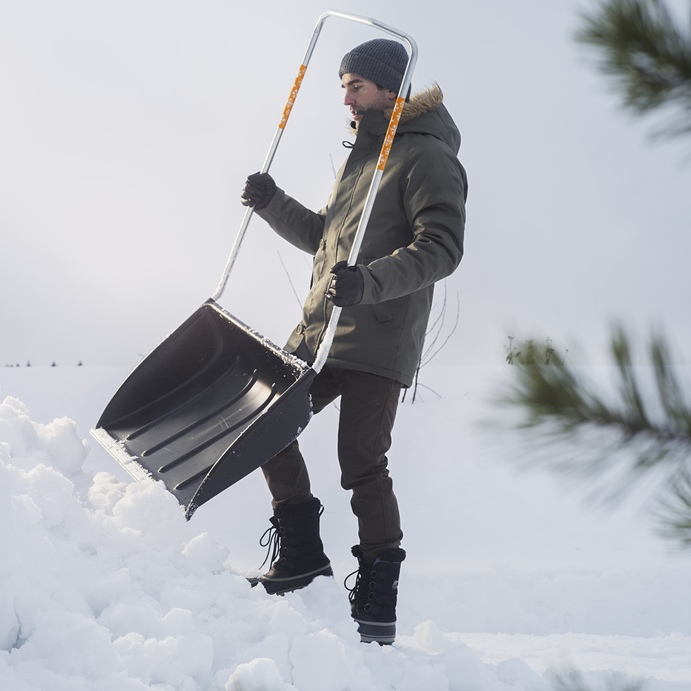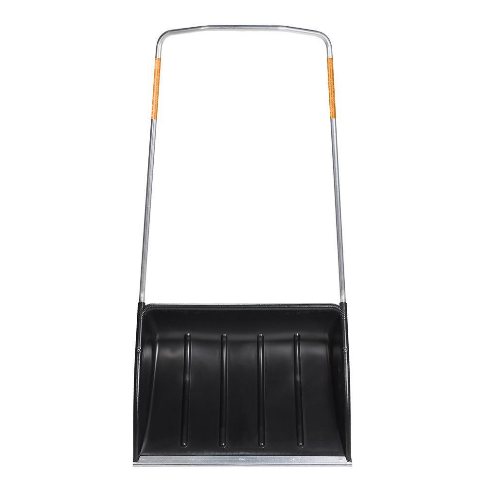 Скрепер-волокуша отлично подходит для быстрой и эффективной уборки большого количества снега на открытом пространстве, вокруг дома, парковочного места или гаража. rn Длинная рукоятка из стальной трубы для эффективной работы.rn Оранжевый отражатель на рукоятке для безопасной работы в темное время суток.rn В конструкции ковша используется специальный пластик, устойчивый к перепадам температуры.rn Ковш усилен стальной кромкой.rn Выпуклые ребра на ковше не позволяют мокрому снегу прилипать.