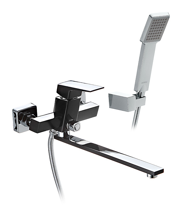 Смеситель для ванны и душа ARGO PREMIUM GRANO 35-L35P c длинным изливом c однорычажный с лейкой черный/хром