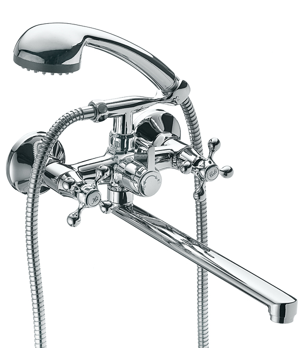 Смеситель для ванны и душа MITTE OLDIE OLD03BL с длинным изливом двухвентильный с лейкой
