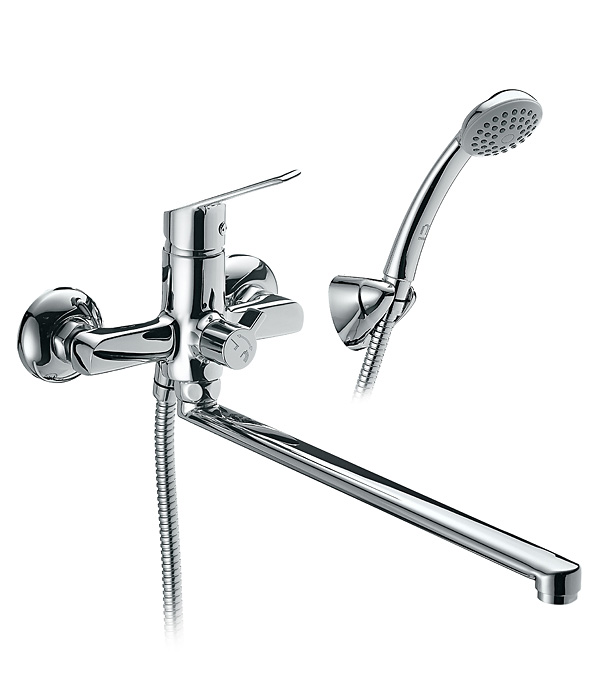 смеситель для ванны с длинным изливом и керамическим дивертором.