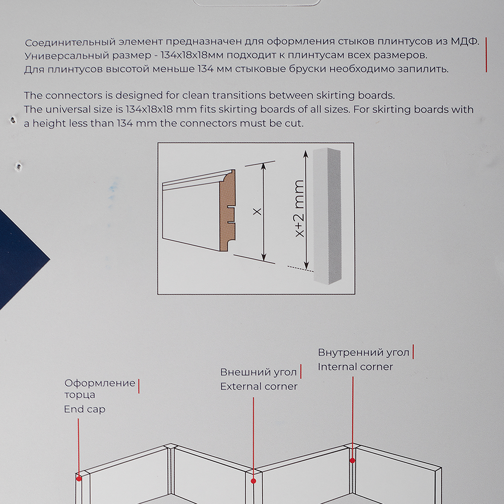 Соединительный элемент к плинтусу МДФ. Предназначен для избежания неровных косых срезов при монтаже плинтуса МДФ.