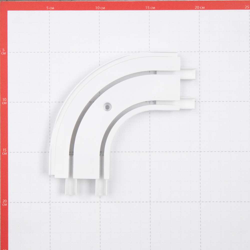 Дополнительный функциональный элемент для соединения между собой пластмассовых двухрядных карнизов под углом 90 градусов.