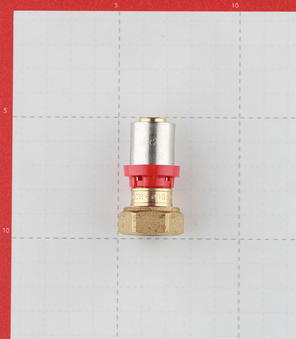 Предназначен для соединения металлопластиковой трубы диаметром 16 мм и коллектора с выходами 1/2с наружной резьбой, имеющими плоский торец.