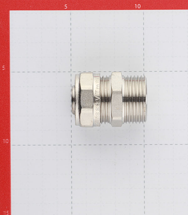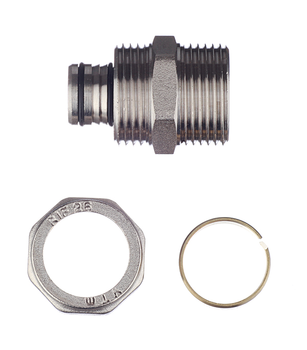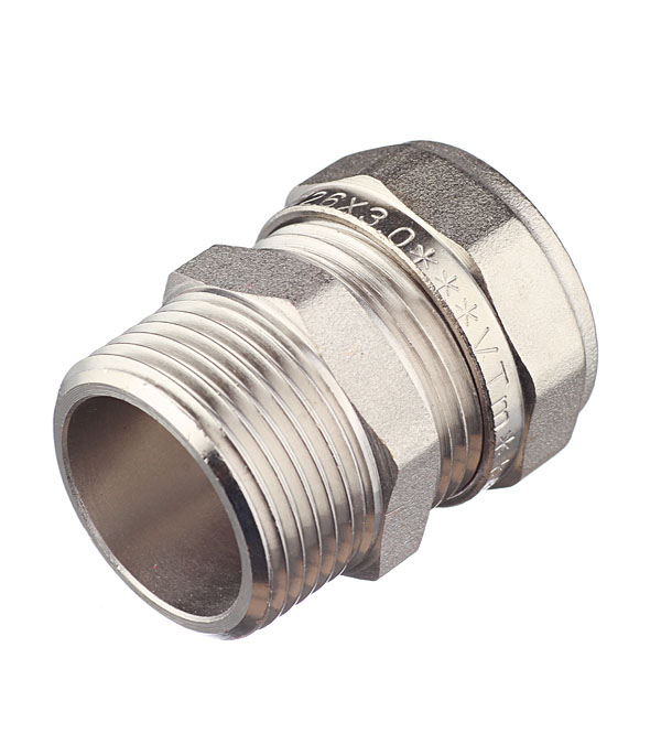 Предназначен для соединения металлополимерной трубы 26 мм. и компонента системы с резьбовым подключением 1. Резьба фитинга – наружная трубная по ГОСТу 6357. Может использоваться в системах питьевого и хозяйственного водопровода, горячего водоснабжения, отопления, а также на технологических трубопроводах, транспортирующих жидкости, не агрессивные к материалам фитинга.