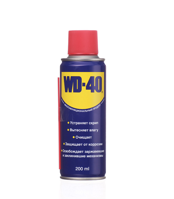 Универсальное средство со свойствами очистителя, расщепителя масел и жиров, смазки. Используется для создания защитного барьера против сырости на обработанной им поверхности за счет свойства вытеснения влаги и проникающей способности. Средство удаляет жир, битумные пятна и остатки клея, защищает металл от коррозии, смазывает детали не оставляя жирных или липких следов, проникает в механизмы, освобождая заржавевшие части и т.п. WD-40 можно наносить практически на любые поверхности: металл, резину, дерево, пластик, окрашенные металлические поверхности. Нельзя обрабатывать поликарбонат и полистирол.