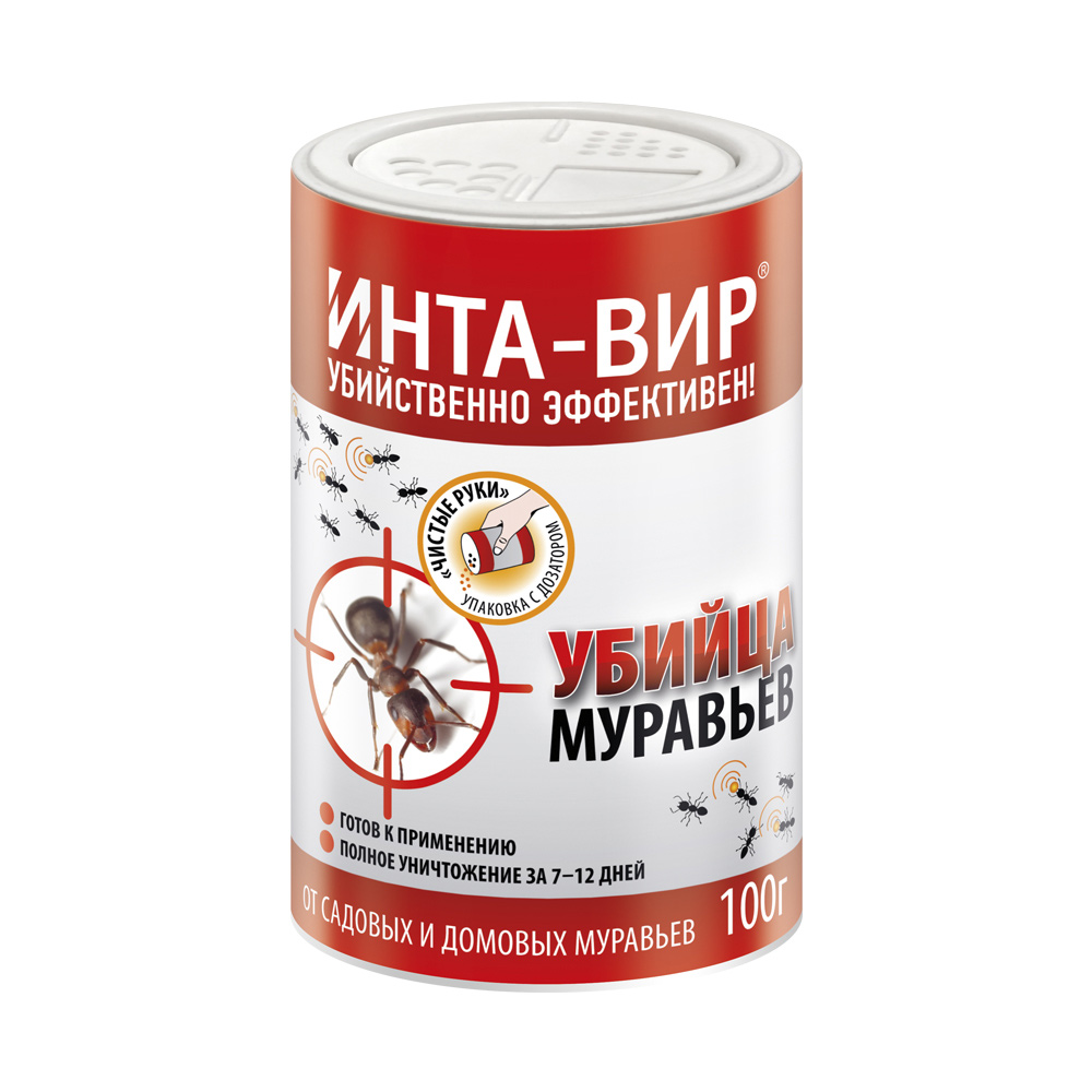 Высокоэффективное средство Инта-вир для уничтожения всех типов муравьев в доме, саду и на участках. Средство действует по принципу Эпидемии– муравьи приносят приманку в муравейник и кормят всех муравьев, что приводит к гибели.