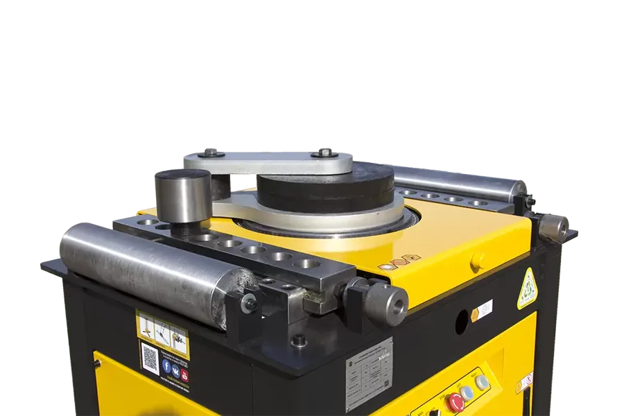 • рабочий диск и упорные рейки цельные (а не полые как у других). Твердость диска составляет 16 HRC , а твердость рейки 30 HRC, твердость гибочных приспособлений достигает 40 HRC