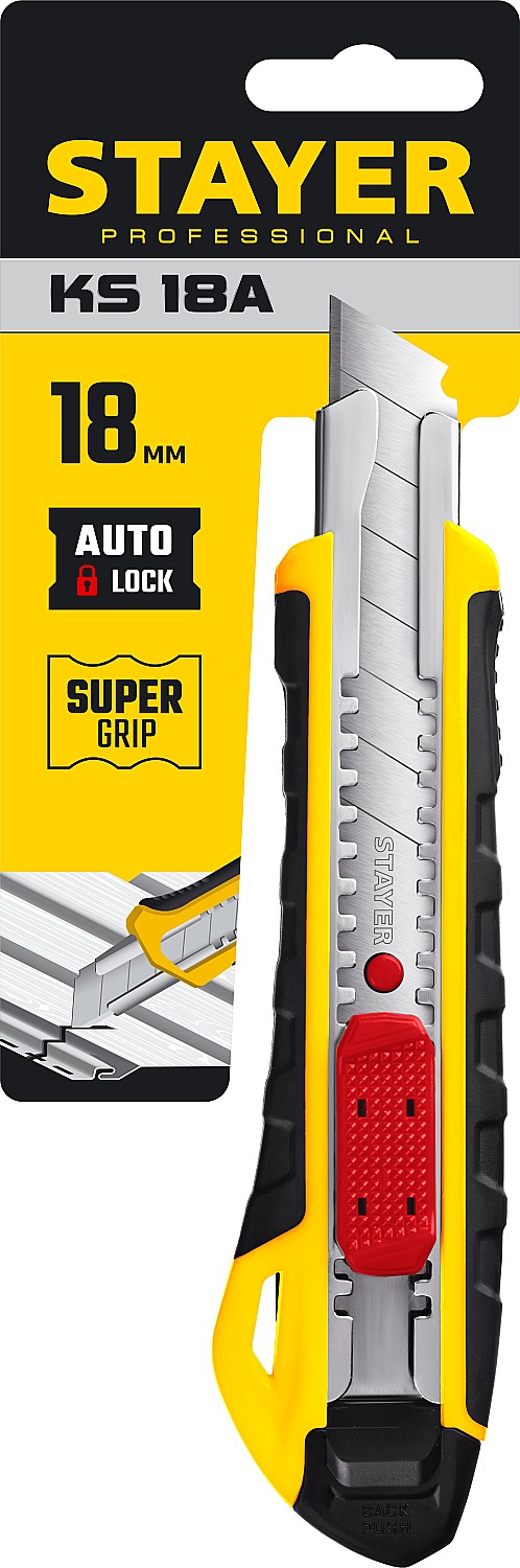 STAYER 18 мм, сегментированное лезвие, автостоп, нож KS-18A 0916_z01
