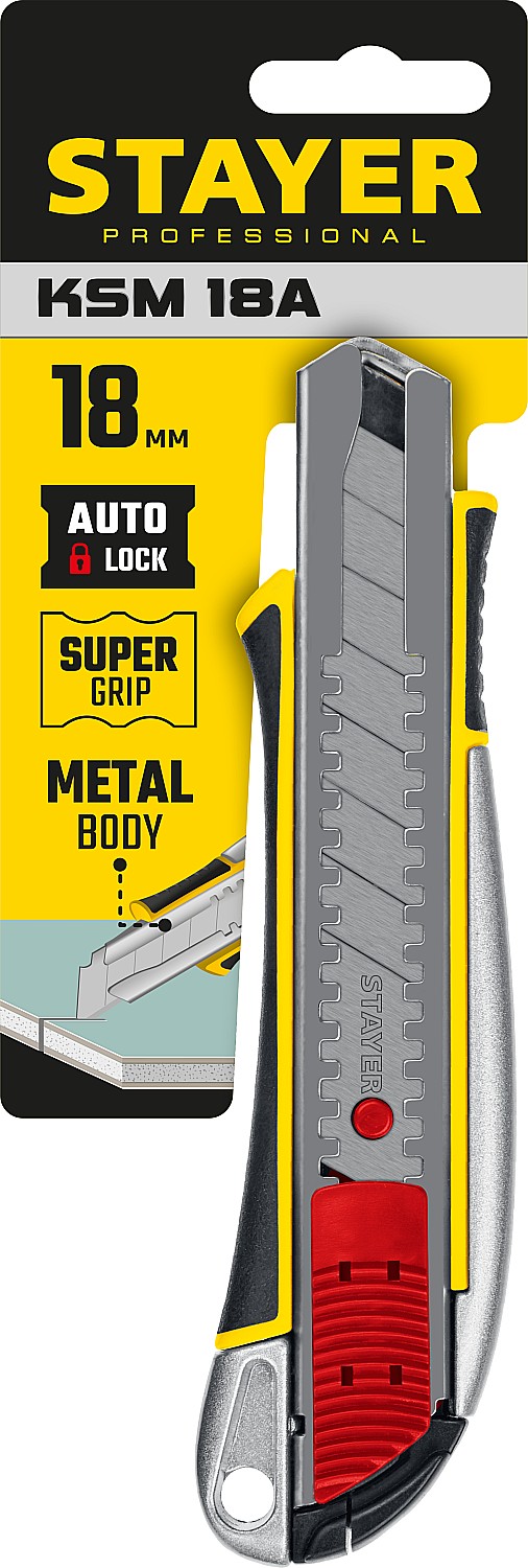 STAYER 18 мм, сегментированное лезвие, автостоп, нож KSM-18A 09143_z01