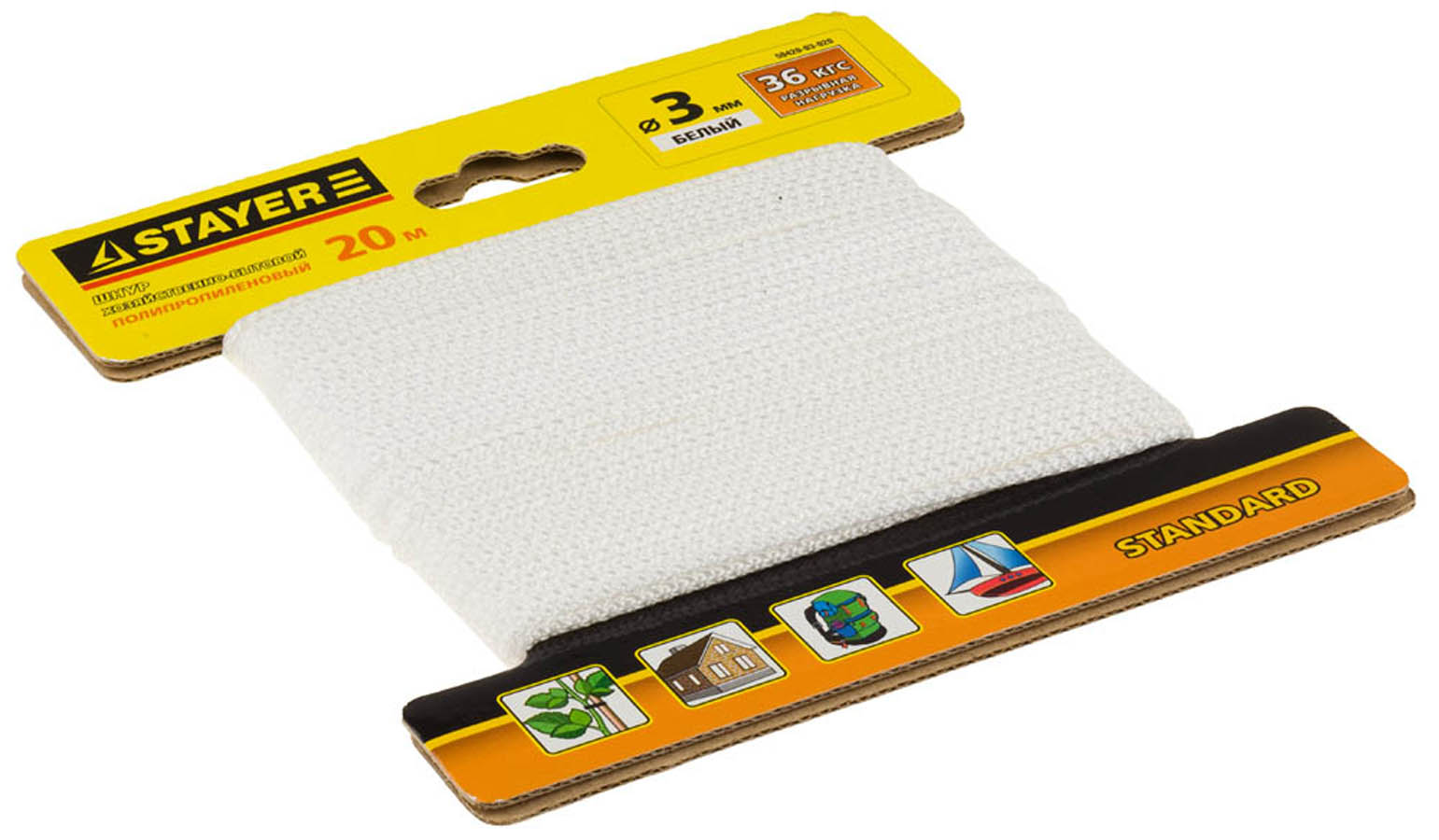 STAYER 20 м, 3 мм, полипропиленовый, вязанный, с сердечником, белый, шнур хозяйственно-бытовой 50420-03-020