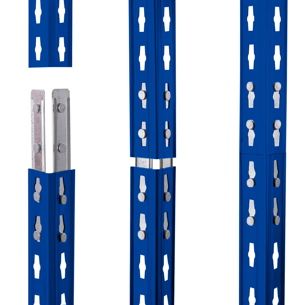Подходит для гаражей, подсобок, мастерских. В комплекте вертикальные стойки, поперечные балки, элементы усиления, 5 полок ХДФ, пластиковые подпятники, инструкция по монтажу.