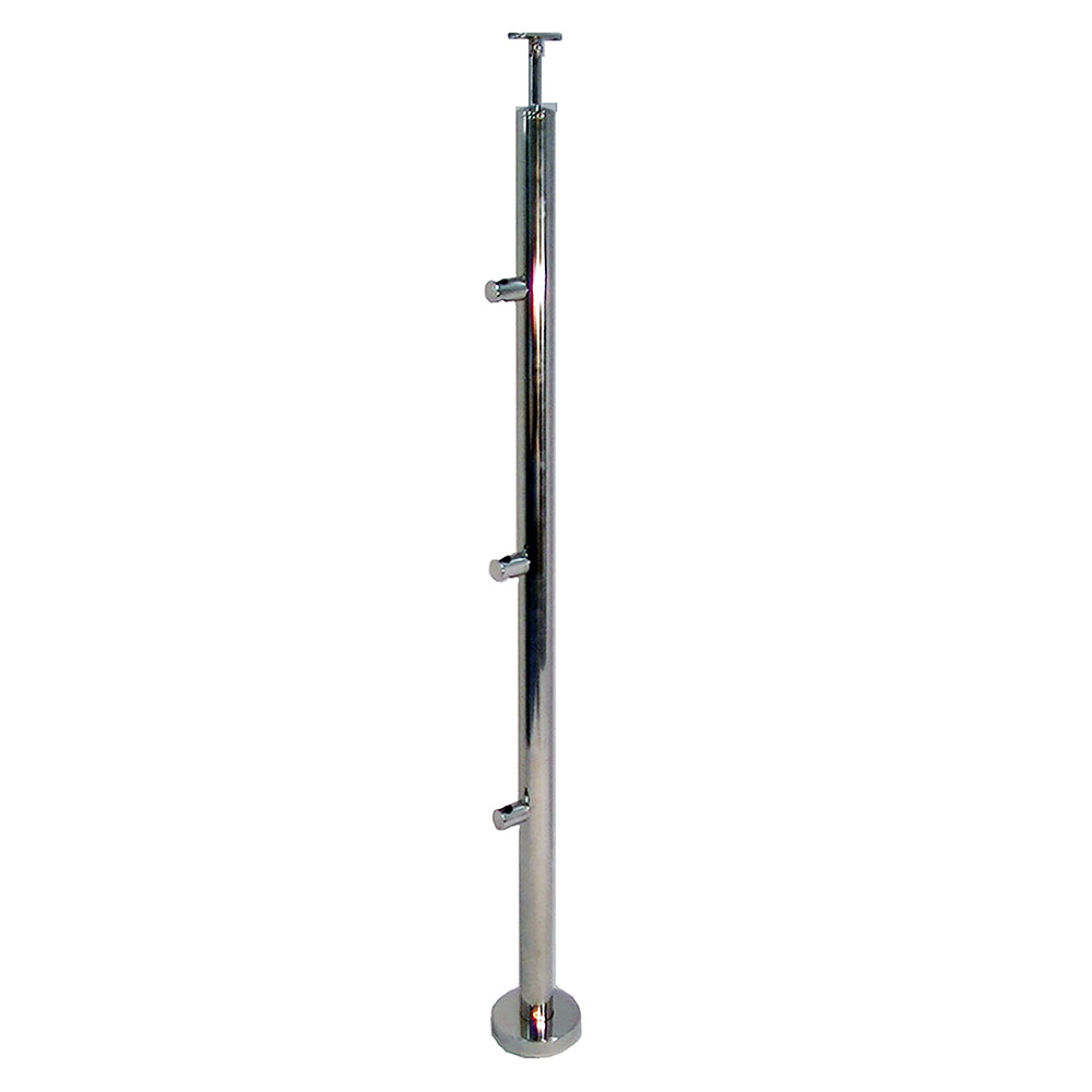 Оконечный (угловой, поворотный) несущий элемент поручня ограждения лестницы (балюстрады, балконного ограждения). Сочетание нержавеющей стали и бука.. Устанавливается между оконечными элементами ограждения (столбами, стойками).