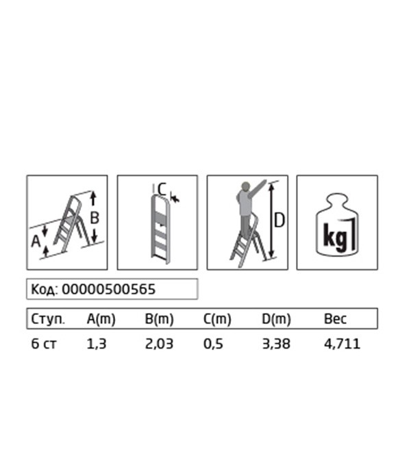 Предназначена для выполнения строительных, ремонтных, отделочных или иных видов работ, когда необходимо произвести какие-либо действия на высоте. Высокая дуга безопасности и широкая стальная платформа способствуют удобству при выполнении работ. Фиксаторы защищают стремянку от самопроизвольного раскладывания. Рифленые ступени и пластиковая накладка по центру верхней платформы, надежно защищают от скольжения. Пластиковые насадки на ножках обеспечивают устойчивость на любой поверхности и защищают пол от царапин. Пластиковые заглушки на ступенях защищают от травм в виде царапин во время подъема и спуска по стремянке. Стремянка легко складывается до компактных размеров для хранения и переноски. rnРабочая высота – это параметр, рассчитываемый путем сложения высоты верхней секции лестницы/стремянки и роста человека с вытянутой вверх рукой (в среднем, два метра).